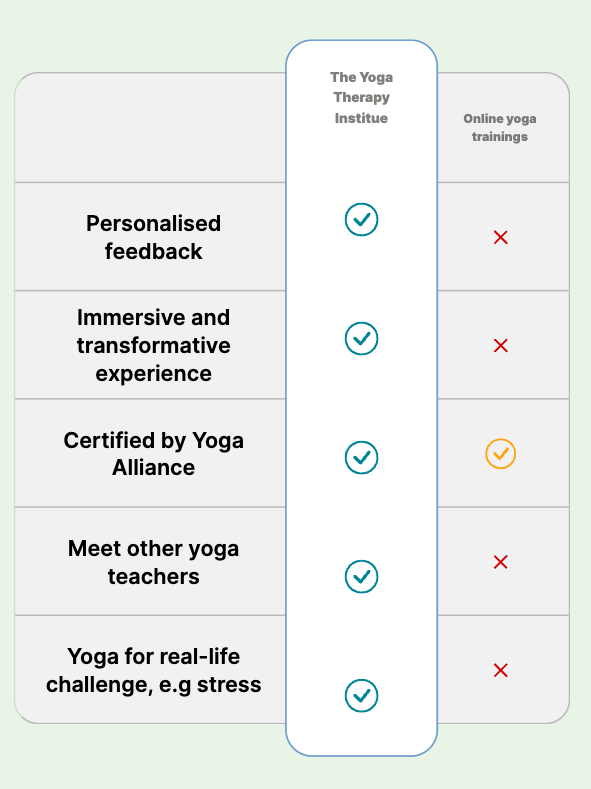 The Yoga Therapy Institute firmly believes that an in-person experience for a first Yoga Teacher Training is invaluable, and will also make you stand out as a highly capable Yoga Teacher.